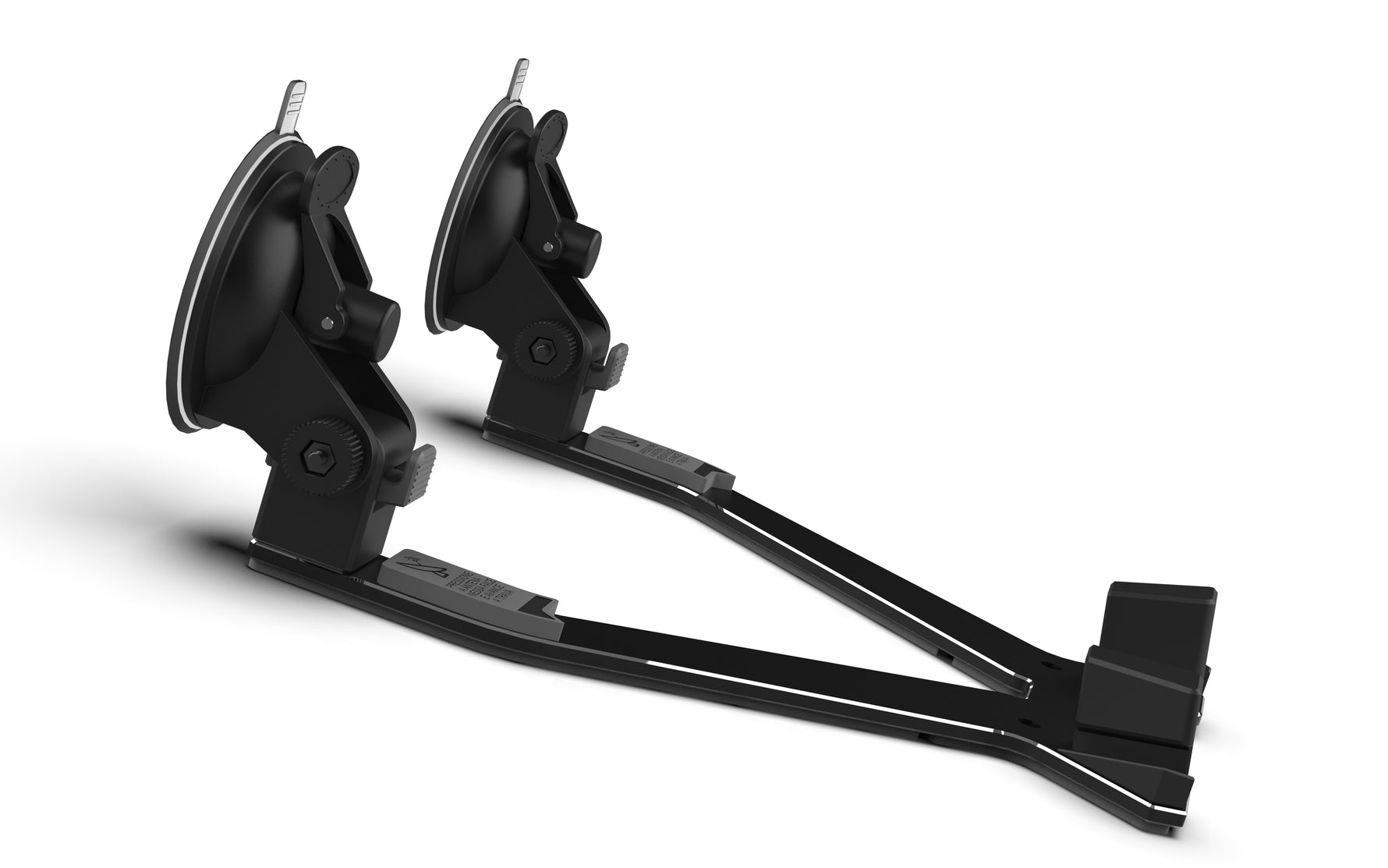 • Ventosas articuladas fixadas na base do parabrisa — sem deslizar